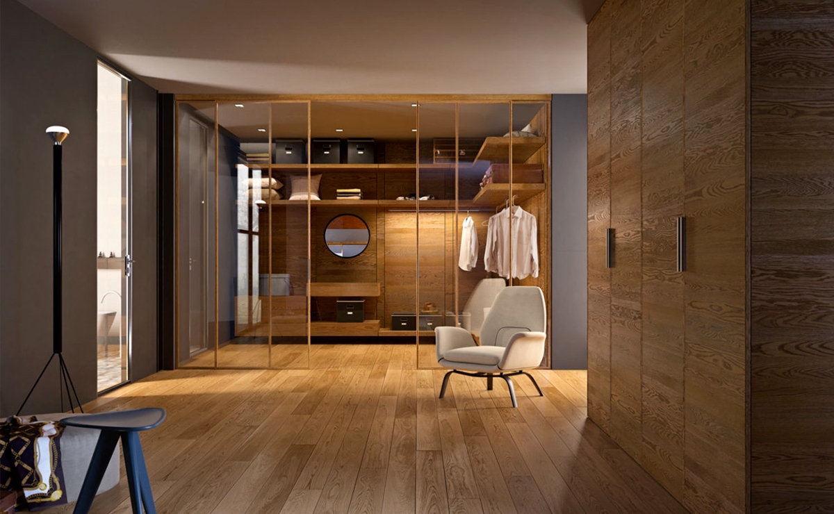 In effetti però è sempre più frequente che la soluzione per creare una cabina armadio sia ritagliare uno spazio all’interno di una ampia camera da letto, posizionando porte scorrevoli, o delimitando gli spazi con materiali trasparenti come il vetro. La porta della cabina armadio dovrà avere un carattere ben preciso, si può infatti decidere di renderla quasi invisibile, o di considerarla come parte degli arredi dell’ambiente.